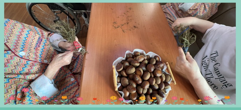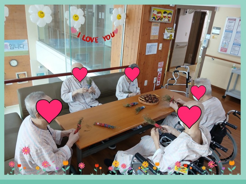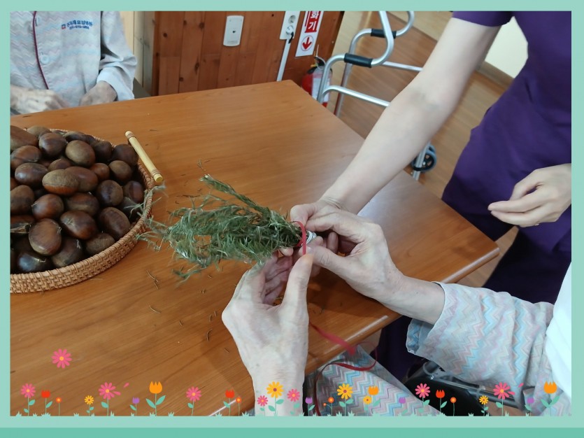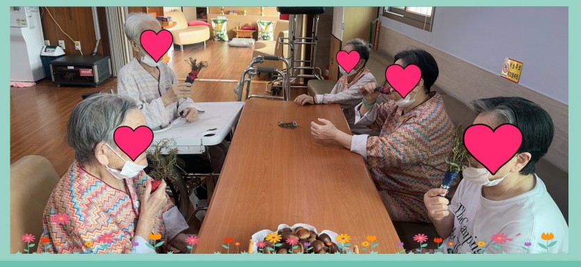 우리 어르신들과는 가지를 가지런히 묶어서 이쁜 스틱을 만들었습니다.