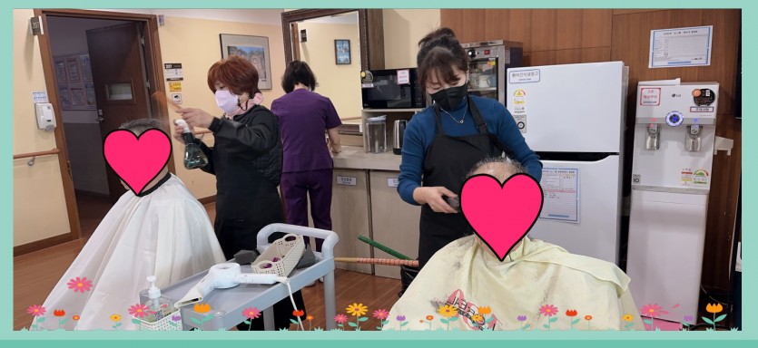 항상 남산관자재요양병원 어르신들의 단정한 두발을 위해 봉사 하시는