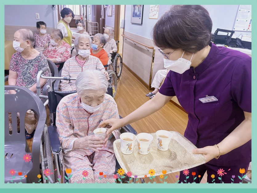 이동하시기 힘드신 어르신들은 각 병실로 미숫가루를 병실로 전해드렸습니다.