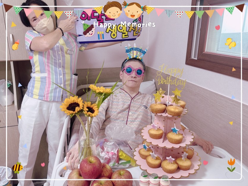 같은 호실 환우들과 간식을 나누시며 소소한 즐거움을 느끼셧습니다.