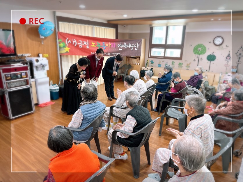 내용 : 코로나19가 주춤해진 요즘 외부 음악공연단을 모시고 흥겨운 시간을 가졌습니다.