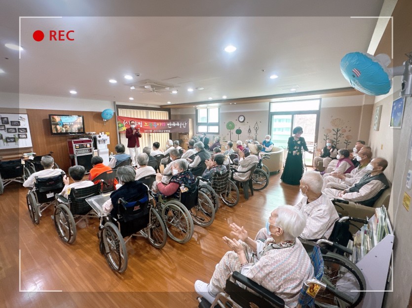 공연단 및 우리 어르신들 모두 마스크를 착용하고 안전하게 진행되었습니다.