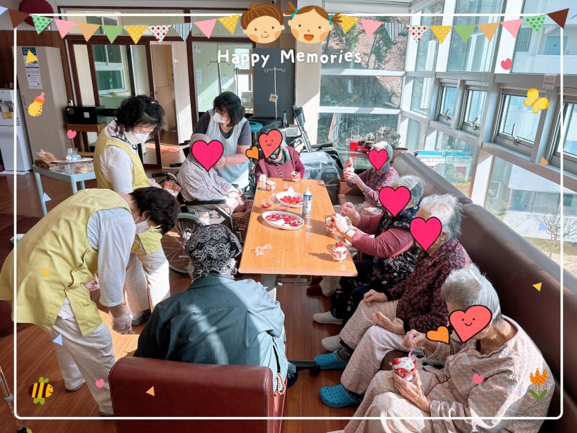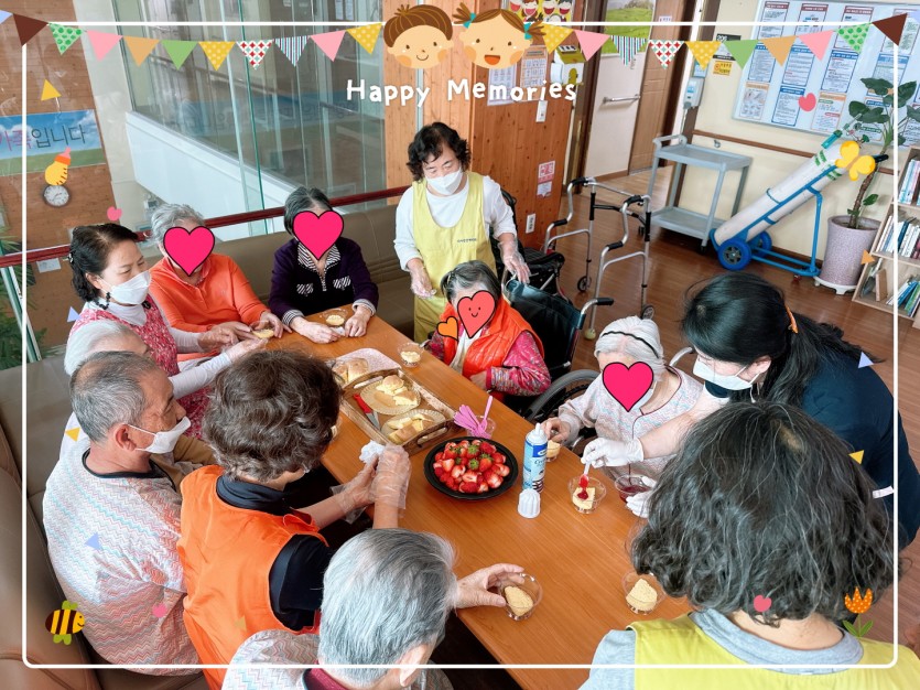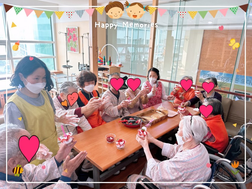 병동 간병팀과 함께 아기자기하고 예쁜 딸기 케이크를 만들어