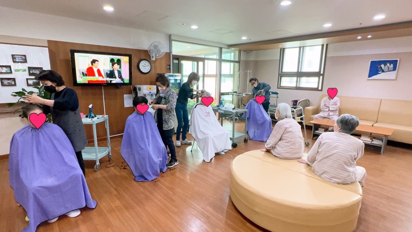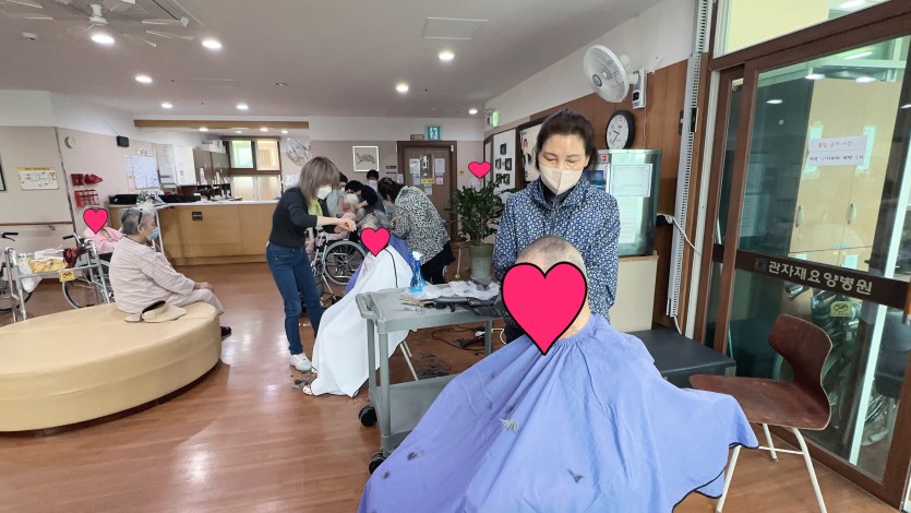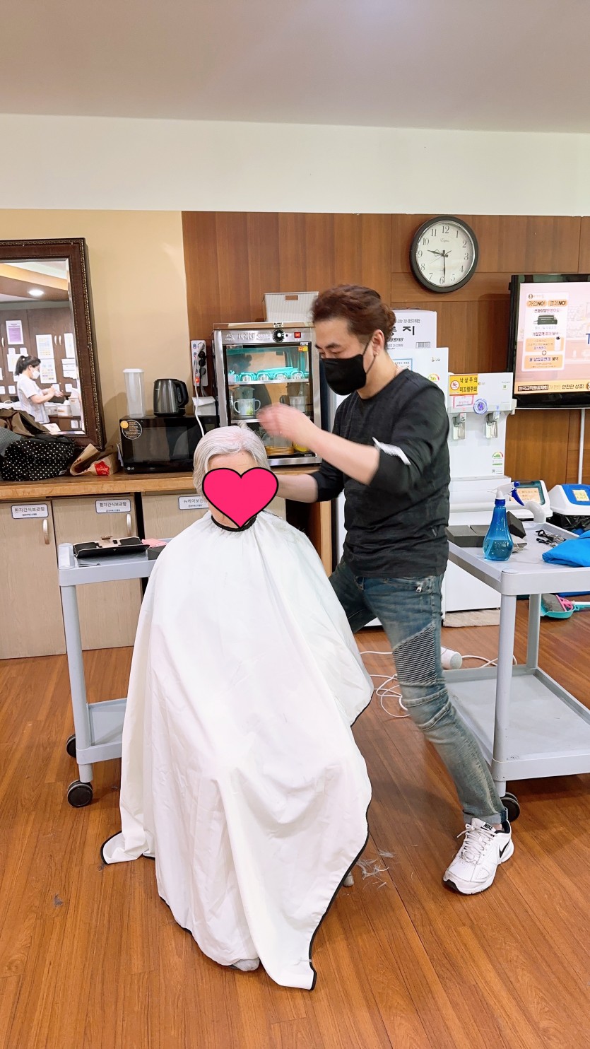 우리 어르신들의 단정한 헤어스타일을 위하여 봉사를 오셨습니다.