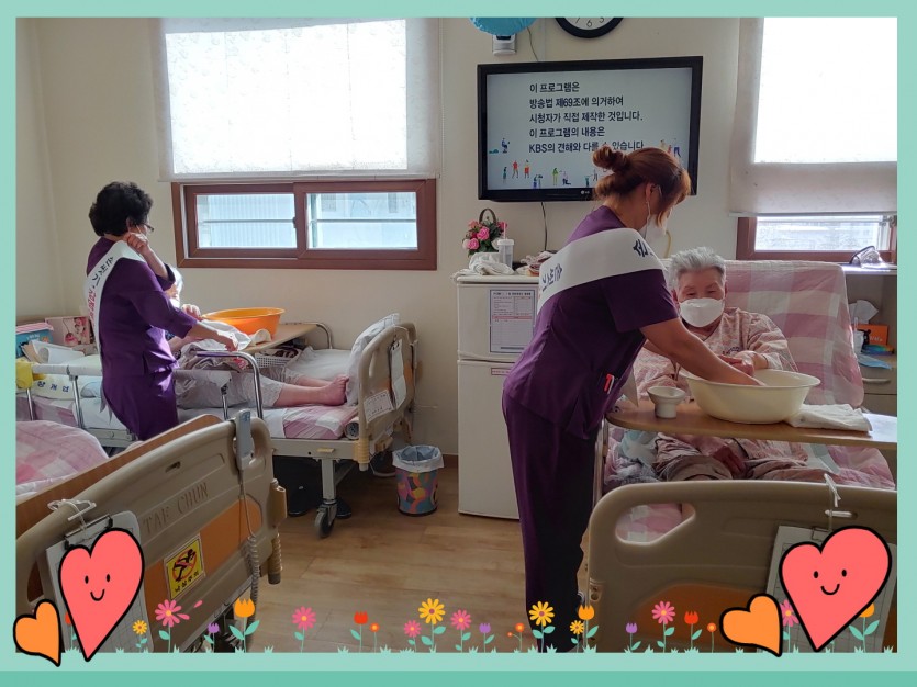 와상으로 누워계시는 어르신들은 우리 선생님들께서