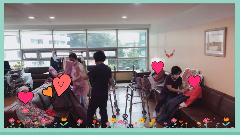 와상 어르신은 침상에서도 한복을 입으신다는 것만으로도 즐거워 하셨고