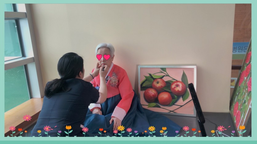 고운 한복을 입으신 우리 어르신들의 사진 액자와 면회 시간