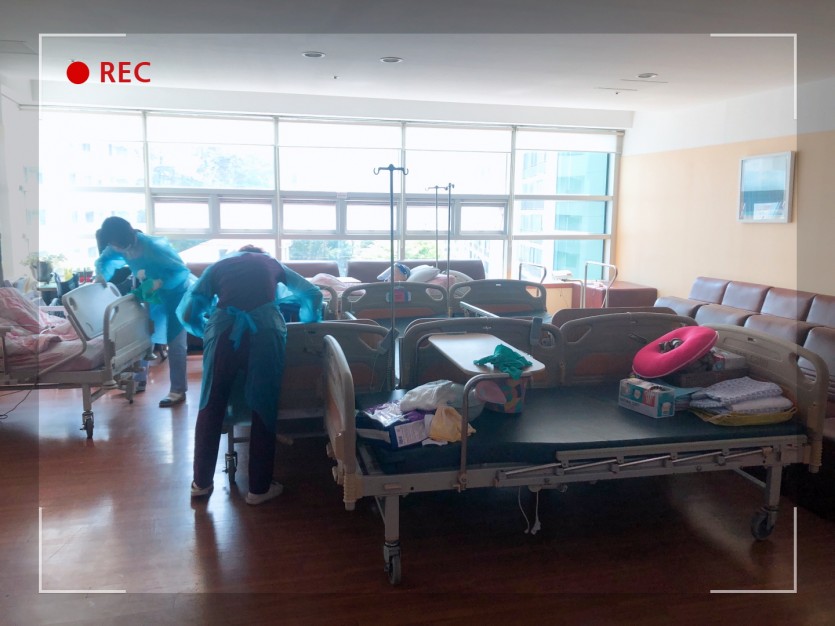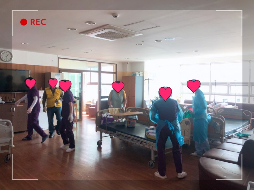 각 병실의 침대를 밖으로 이동시켜서 사이사이 깨끗하게 소독하고 닦고