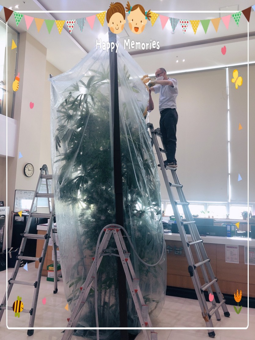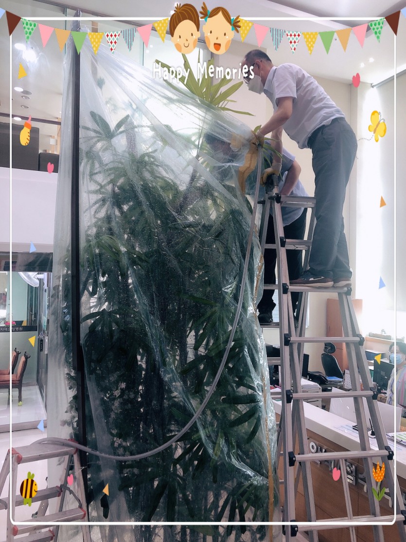 실내 공기질 향상과 빽빽히 많은 잎들의 청결을 위해