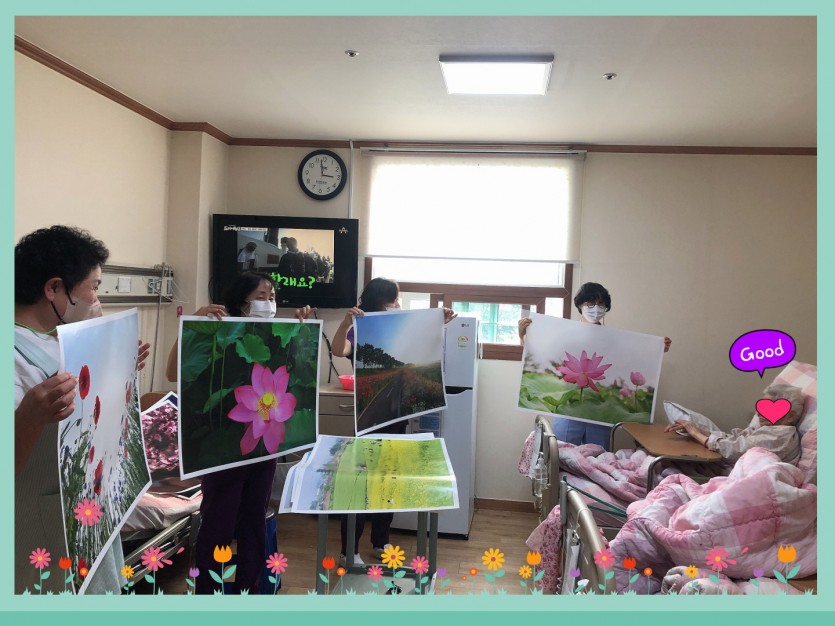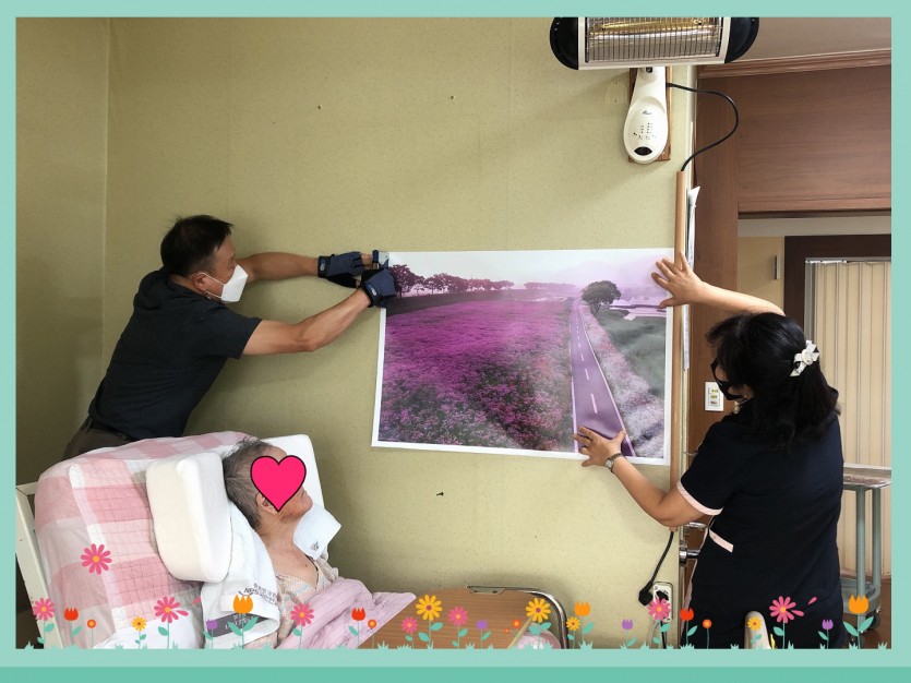 각 병실에 멋진 풍경과 이쁜 사진을 붙여드렸습니다.