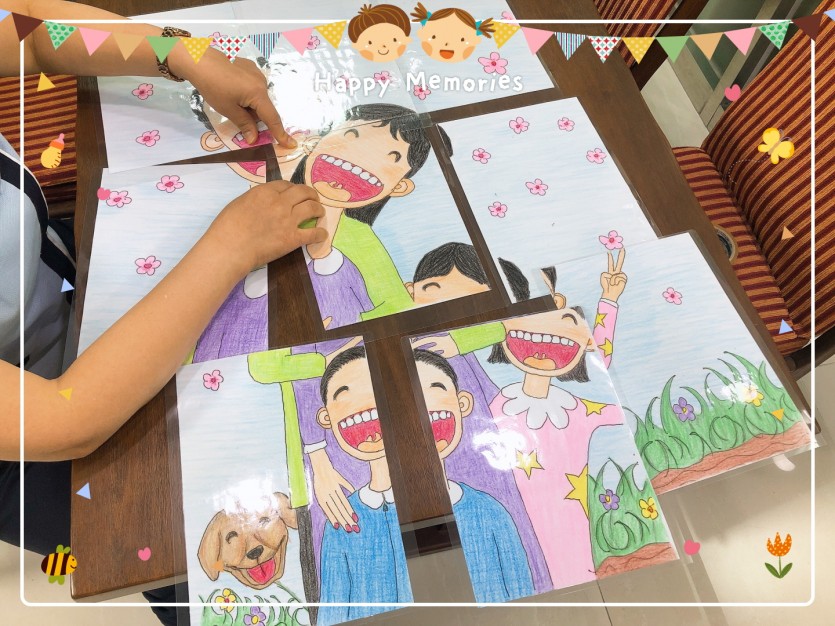 웃는가족 그림은 9장의 분할 그림을 색감이 잘 이어지게 생각을 하시며