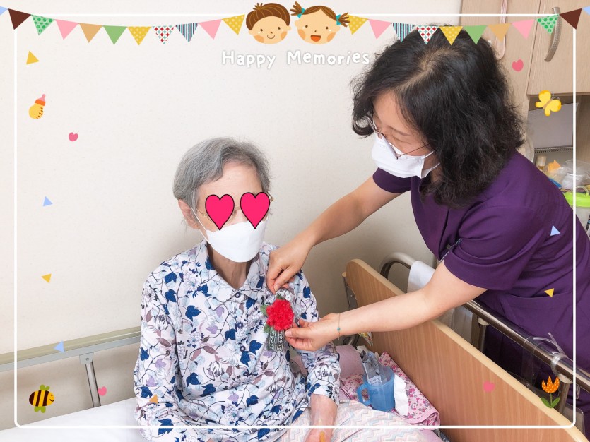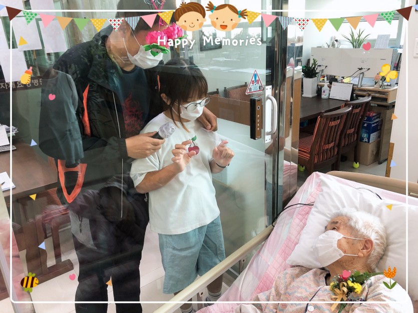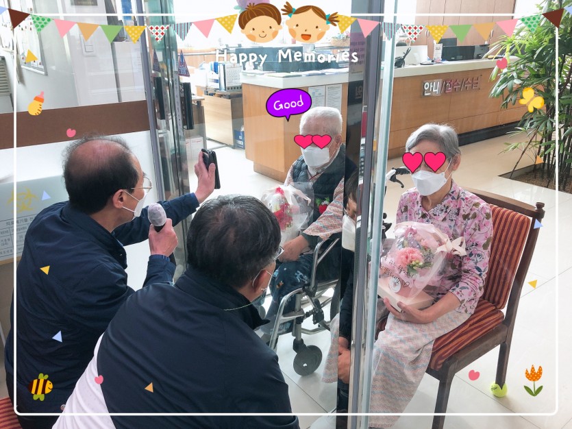 비접촉 면회를 오신 보호자님들께서 병원에서 꽃을 달아주셔서