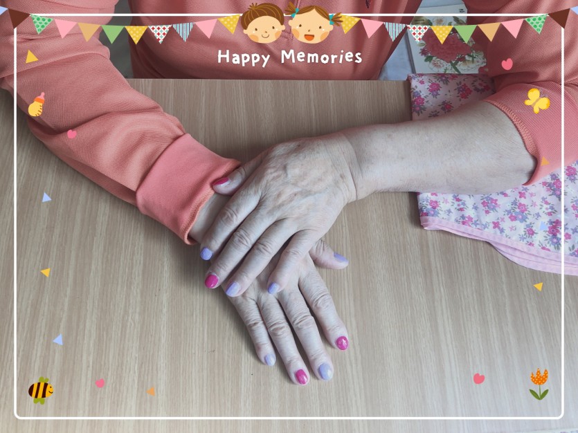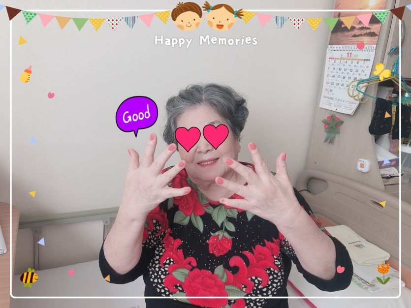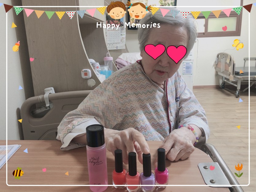 내용 : 재원환자 미용프로그램으로 네일컬러를 곱게 발라드렸습니다.