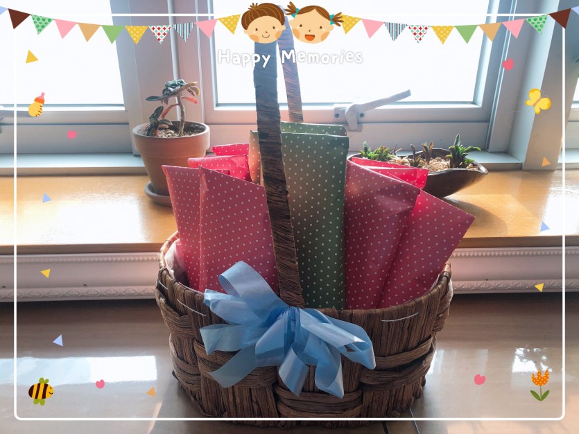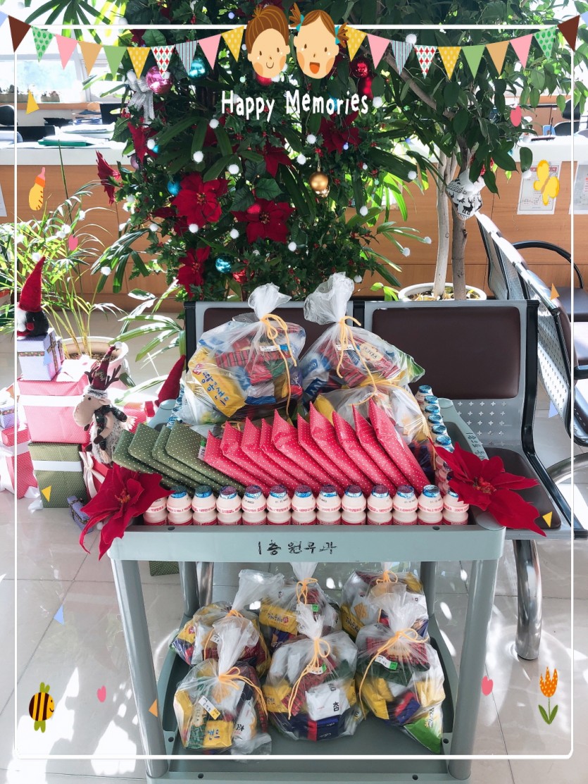 약소하지만 선물과 다과 패킷으로 대신 하였습니다.