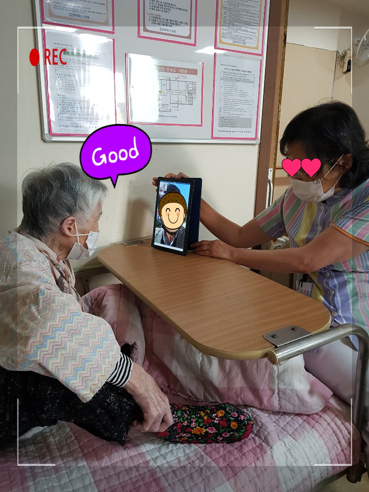 요일별로 각 병동에서 어르신들과 보호자간 영상통화를 연결해 드립니다.