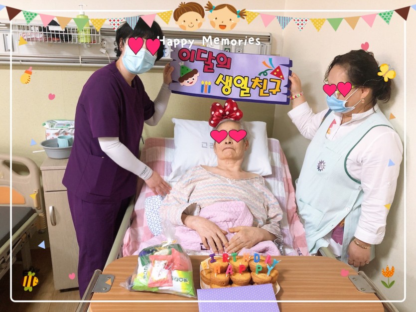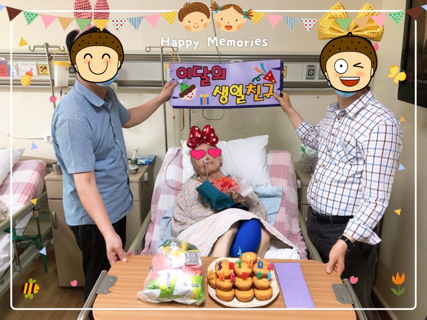아쉽게도 이번달 생신잔치도 각 병실에서 간소하고 조용하게 진행을 하였습니다.