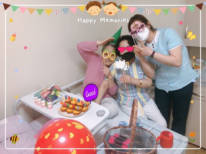 찾아가는 룸서비스로 각 병실에서 생신잔치를 해드렸습니다.