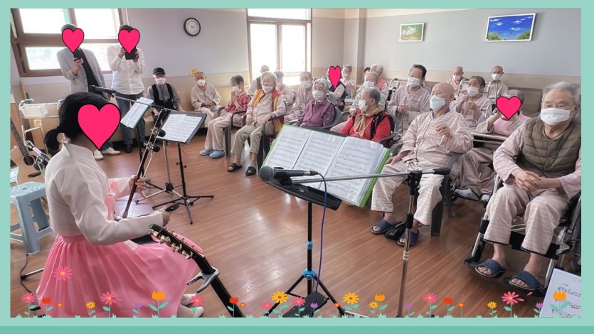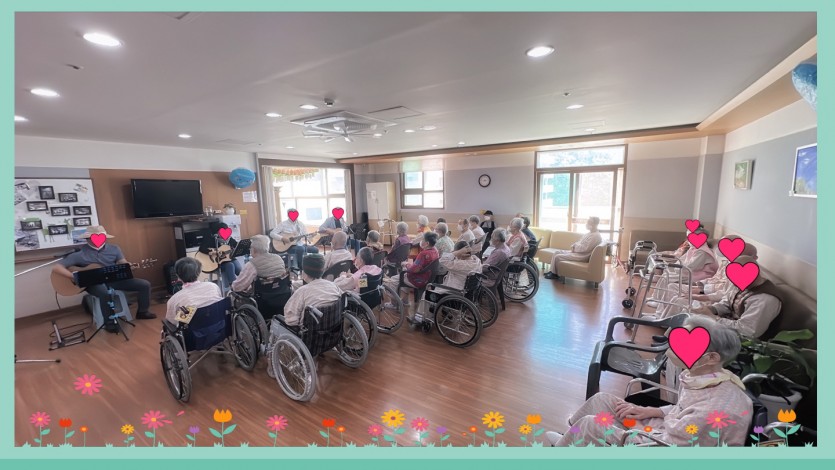 5월 어버이날을 앞두고 우리 어르신들께 기타 및 아쟁 공연을 열어 주셨습니다.