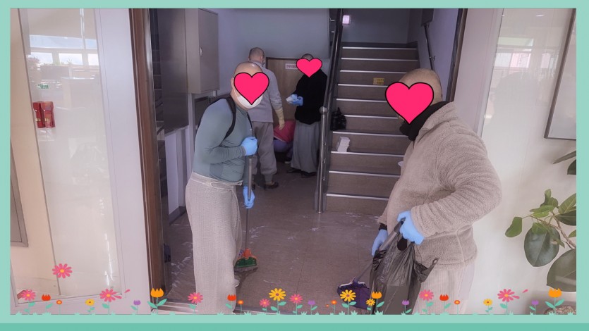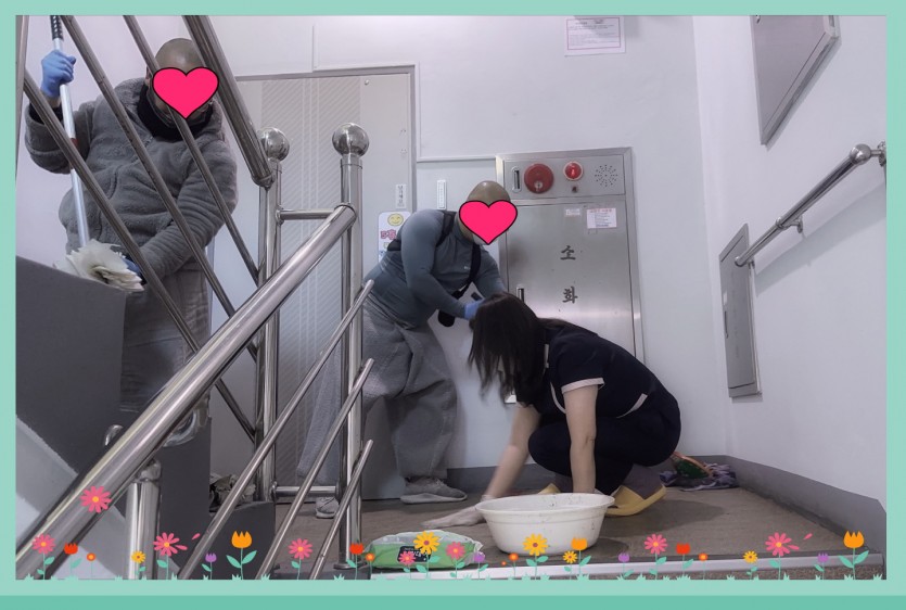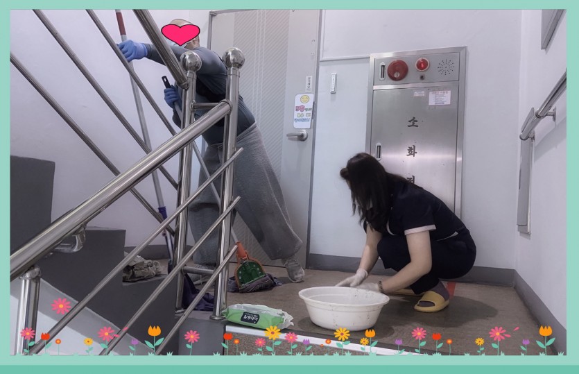 수행 과제라 하셔서 함께 계단 청소를 하시자 권유를 드렸습니다.
