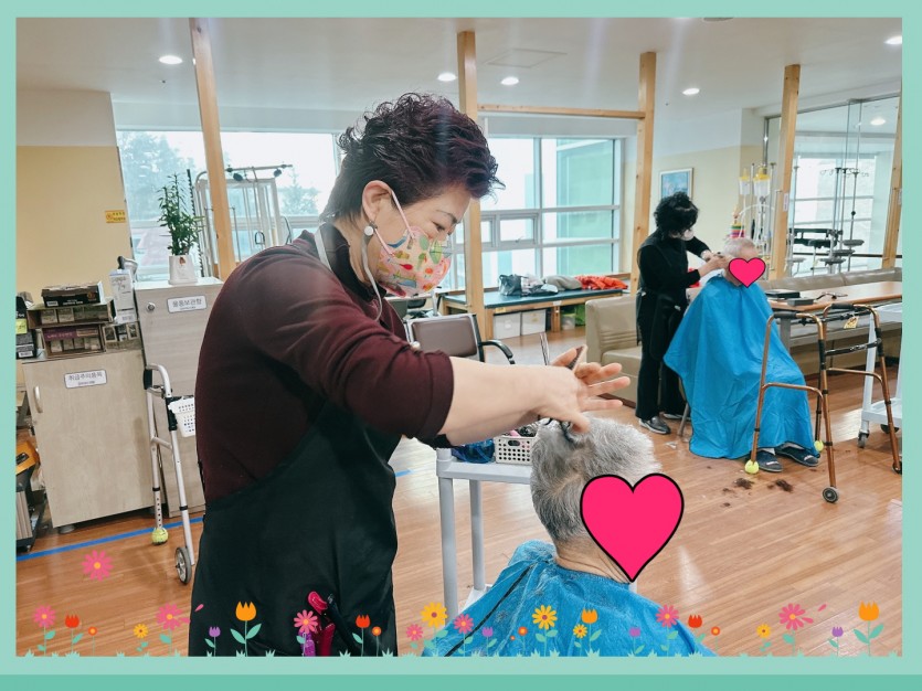 전문가의 손길이 우리 어르신들을 한층 더 젊게 만들어 놓으셔서