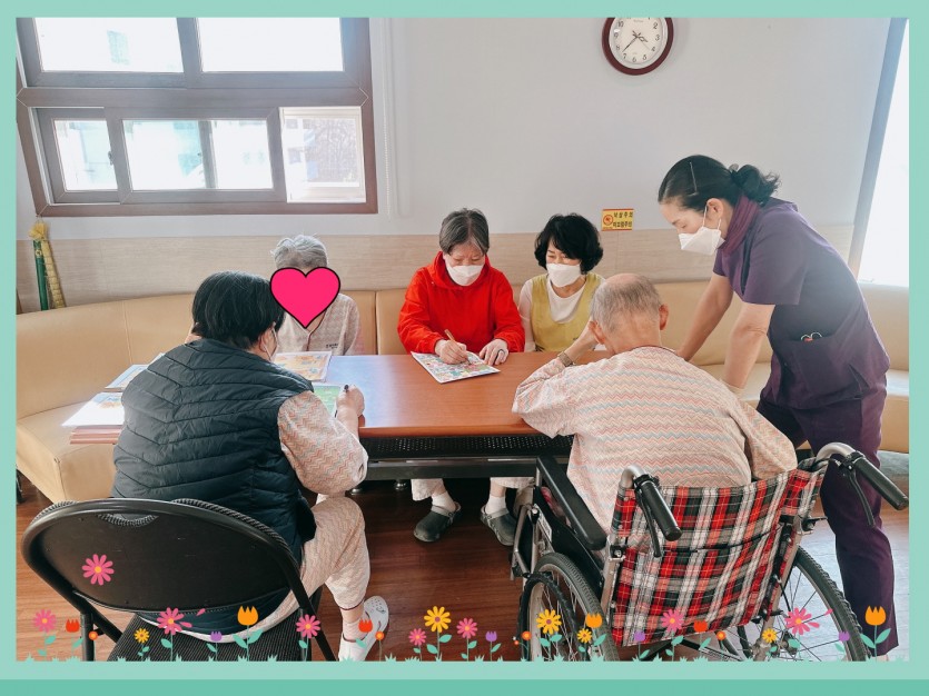옆자리 친구분께 가르켜도 주시고 재미있고 즐거운 인지활동 시간을 보냈습니다.