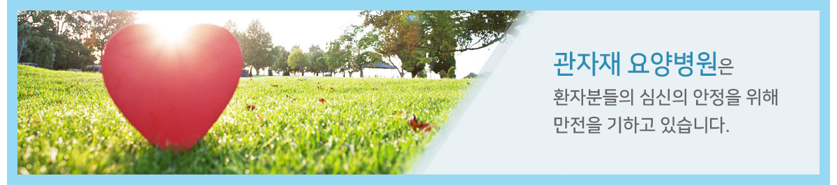 남산 관자재요양병원은(이하 ‘병원‘) 고객님의 개인정보를 중요시하며, "정보통신망 이용촉진 및 정보보호"에 관한 법률을 준수하고 있습니다.