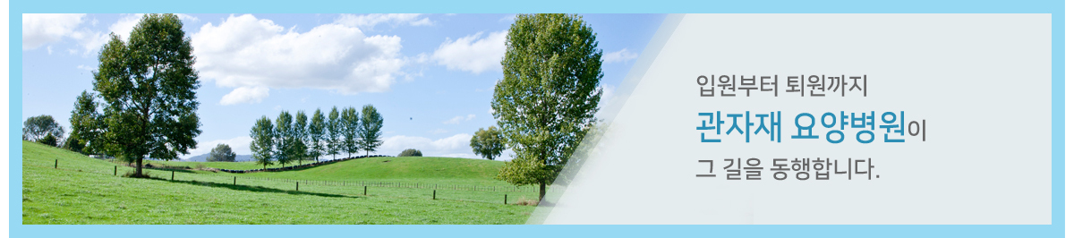 저희 관자재요양병원은 항상 고객을 위해 열려있습니다. 최상의 의료와 생활서비스로 환자분들이 지내시기에 불편함이 없도록 최선을 다하고 있습니다. 주저하지 마시고 언제든 문의 접수 상담주십시오. 관자재요양병원은 고객 여러분을 최우선으로 항상 정성과 친절을 다해 모시겠습니다.