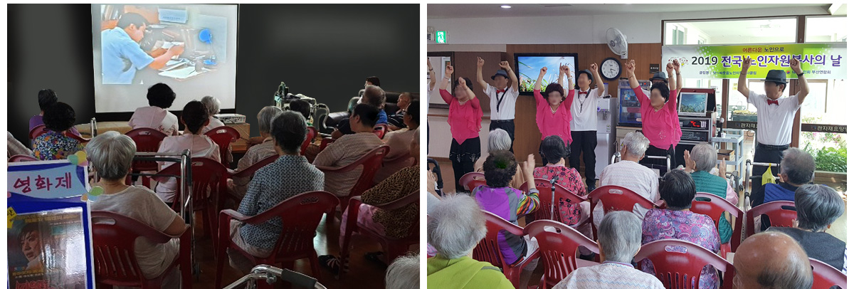 어르신 생신 및 명절 행사, 어버이날 행사, 노인의 날 행사, 부처님 오신 날, 크리스마스 행사 등을 통하여 일상생활의 무료함을 달래고 즐겁게 생활할 수 있도록 돕습니다.
